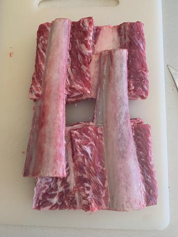- 1 x rack of nicely marbled Beef Ribs with 4 bones preferably (Cut into pairs)