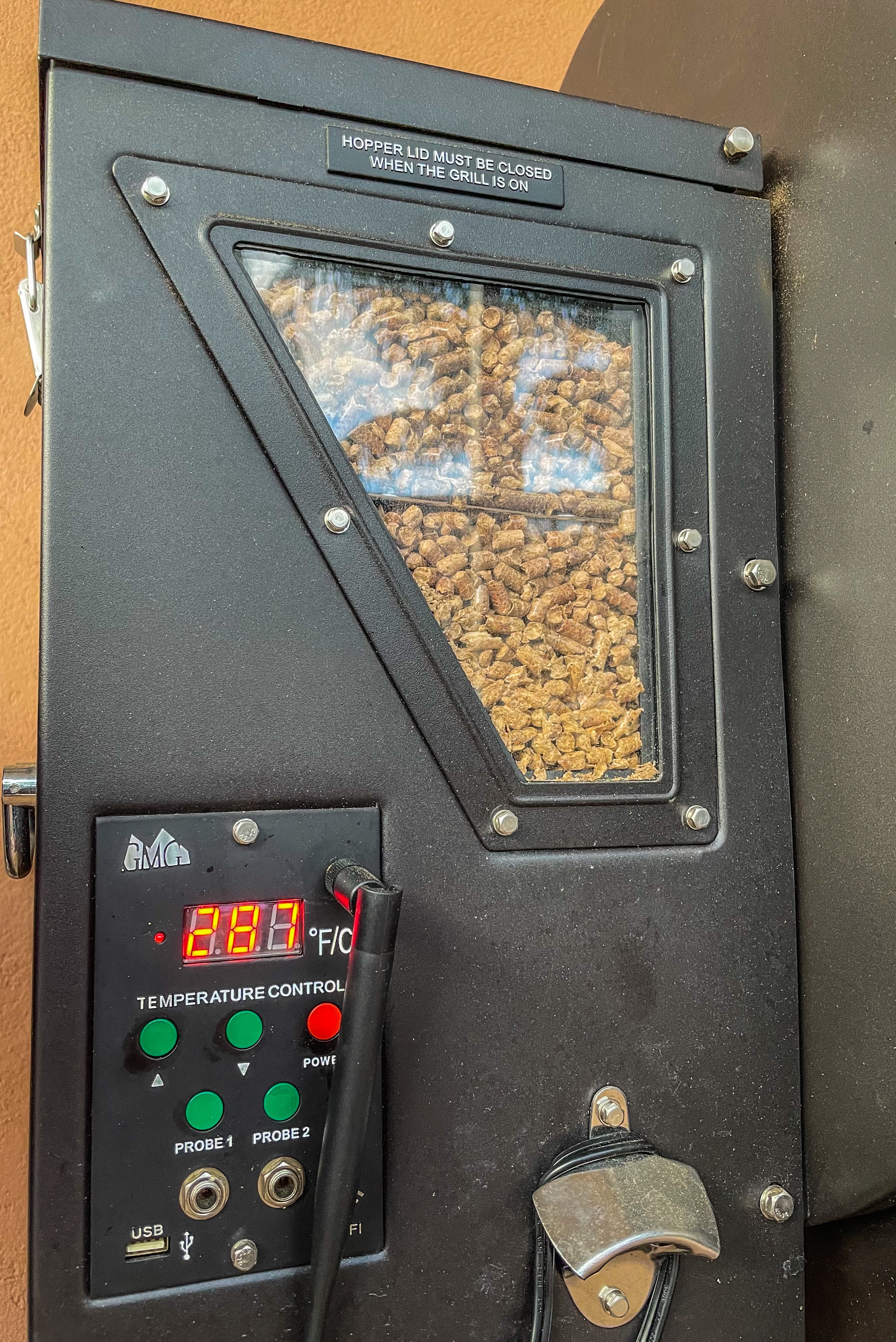 3. Fire up your pellet smoker and set it to your highest temp. I ran my GMG at 550f/287.7c for this.