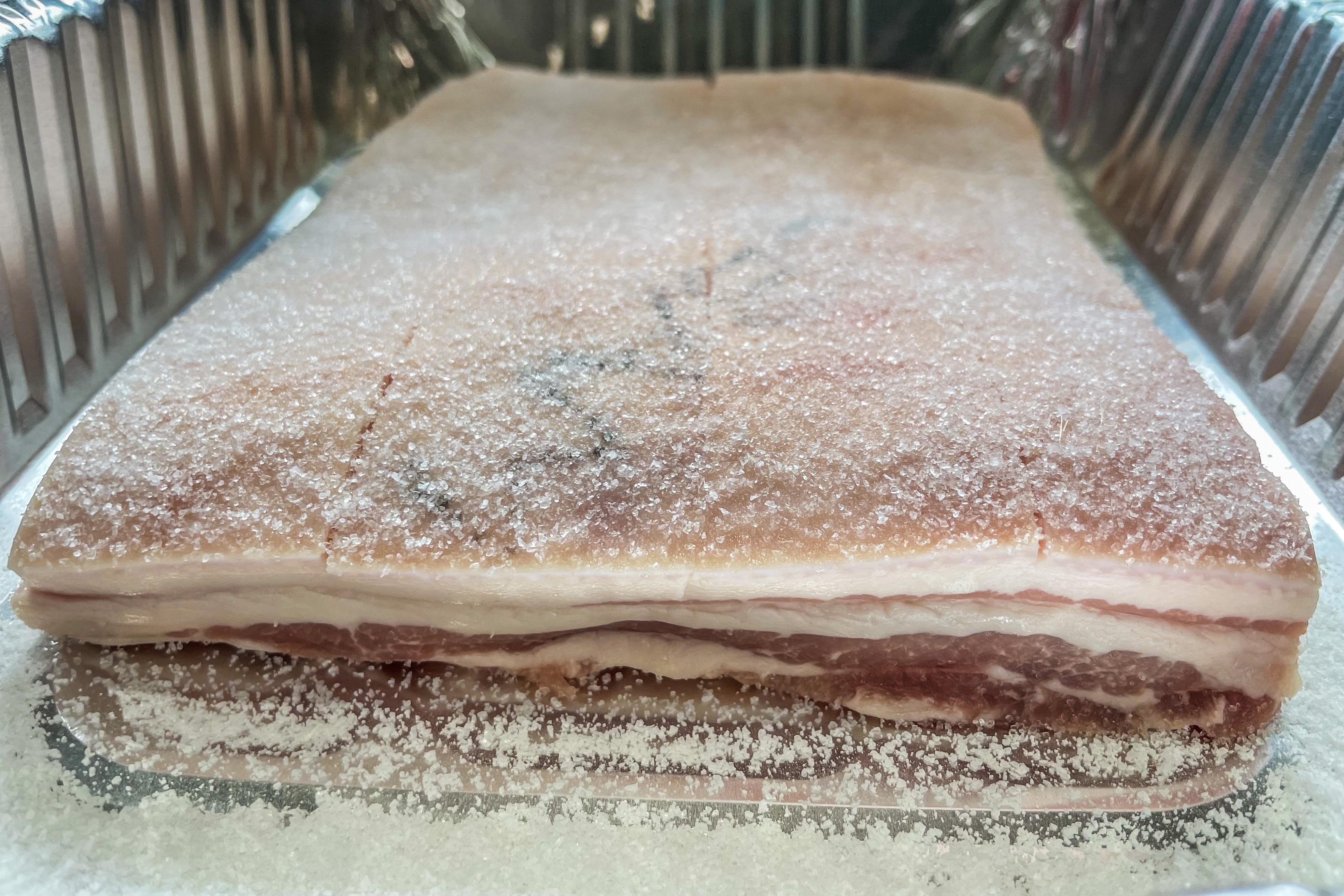 1. Source your pork belly, try to find a thick and even as possible firm piece if you can. I used a couple of good ones I found at Aldi.